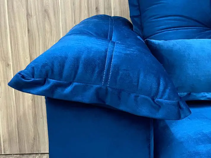 O revestimento é em tecido veludão Premium, deixando a superfície do sofá muito mais macia.